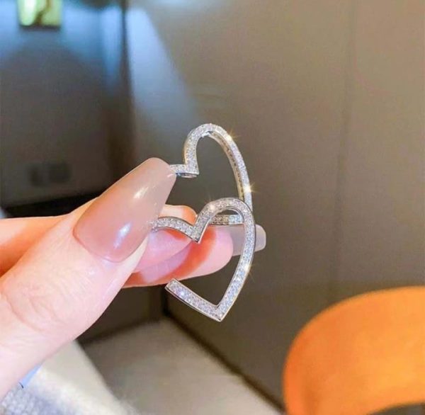 Golden Heart Shape Elegant Zircon Earrings Material Alloy For Girls